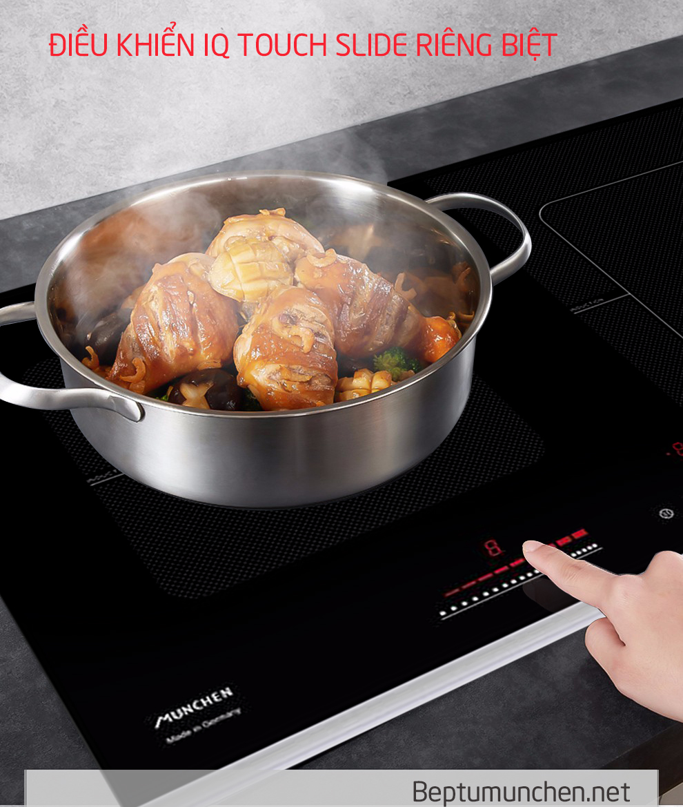 Một điều gây ấn tượng nữa ở mẫu bếp từ Munchen GM8925 đó là bàn phím cám ứng slide riêng biệt cho cả 2 vùng nấu trên bếp, mang lại cảm giác thân thiện và dễ chịu cho người dùng. Hơn nữa với công nghệ IQ sẽ mang đến cho người nội trợ một trải nghiệm thao tác mượt mà và siêu nhạy cảm ngay cả trong khi tay bị dính ướt.